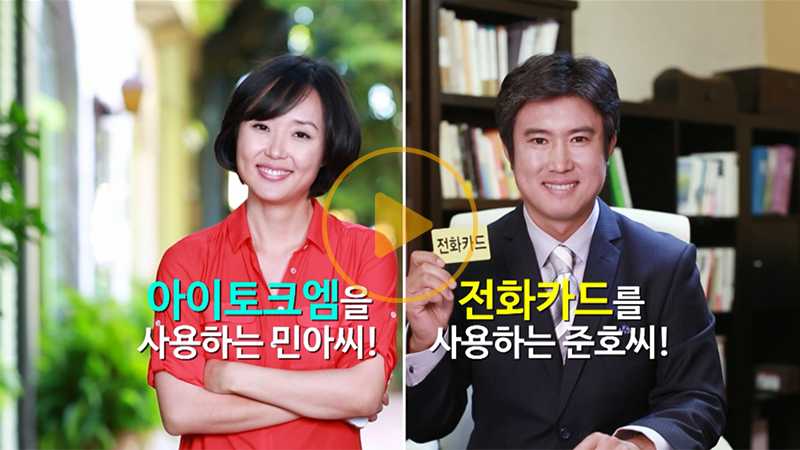 아이토크엠을 사용하는 민아씨! 전화카드를 사용하는 준호씨!
