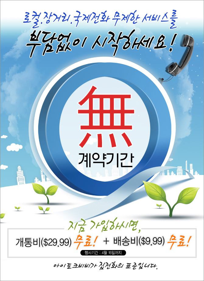 로컬/장거리/국제전화 무제한 서비스를 부담없이 시작하세요!