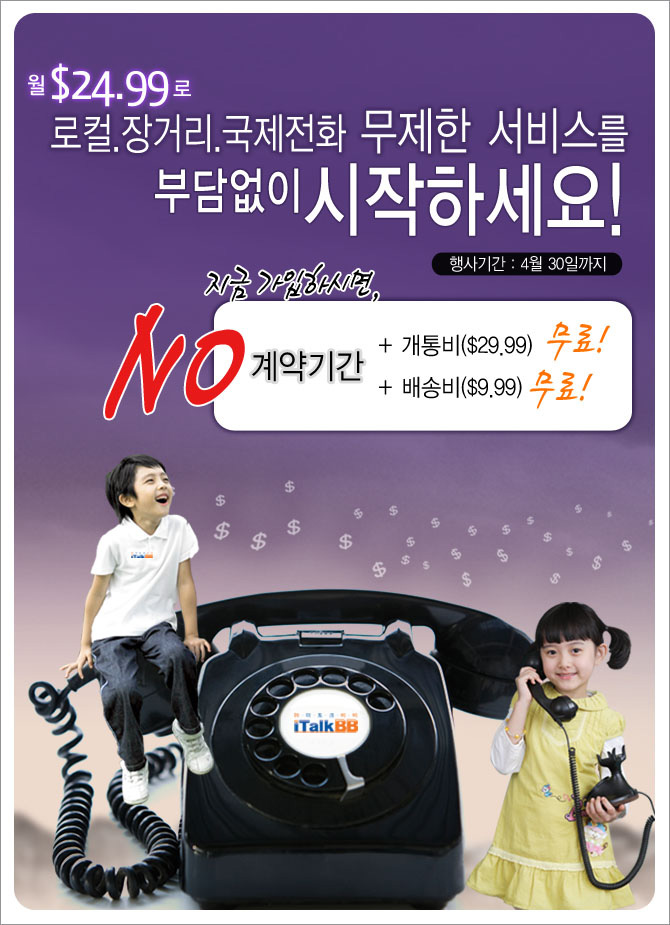 로컬/장거리/국제전화 무제한 서비스를 부담없이 시작하세요!