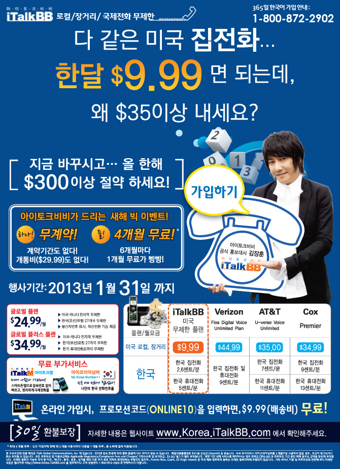 다 같은 미국 집전화..한달 $9.99면 되는데, 왜 $35이상 내세요?