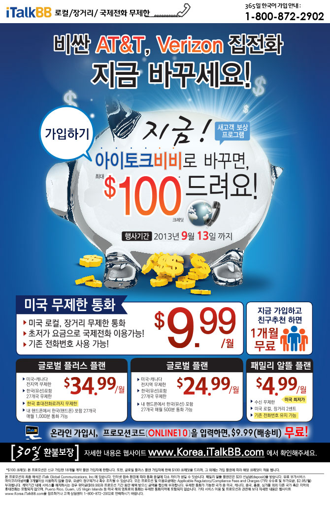비싼 AT&T, Verizon 집전화 지금 바꾸세요!