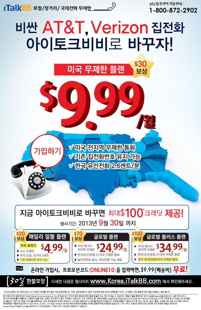 비싼 AT&T, Verizon 집전화 아이토크비비로 바꾸자!