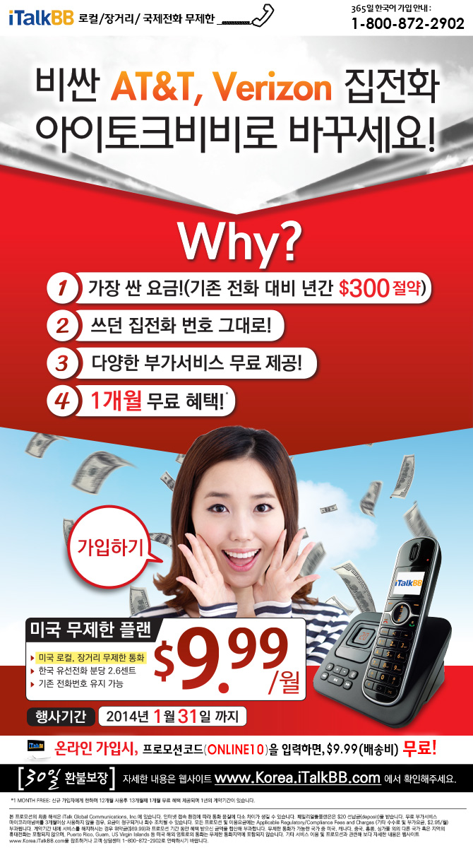 비싼 AT&T, Verizon 집전화 아이토크비비로 바꾸세요!