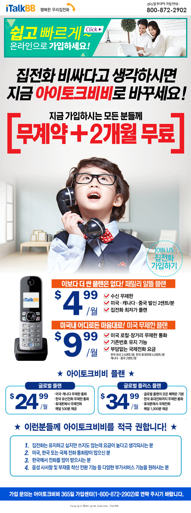 집전화 비싸다고 생가하시면 지금 아이토크비비로 바꾸세요!