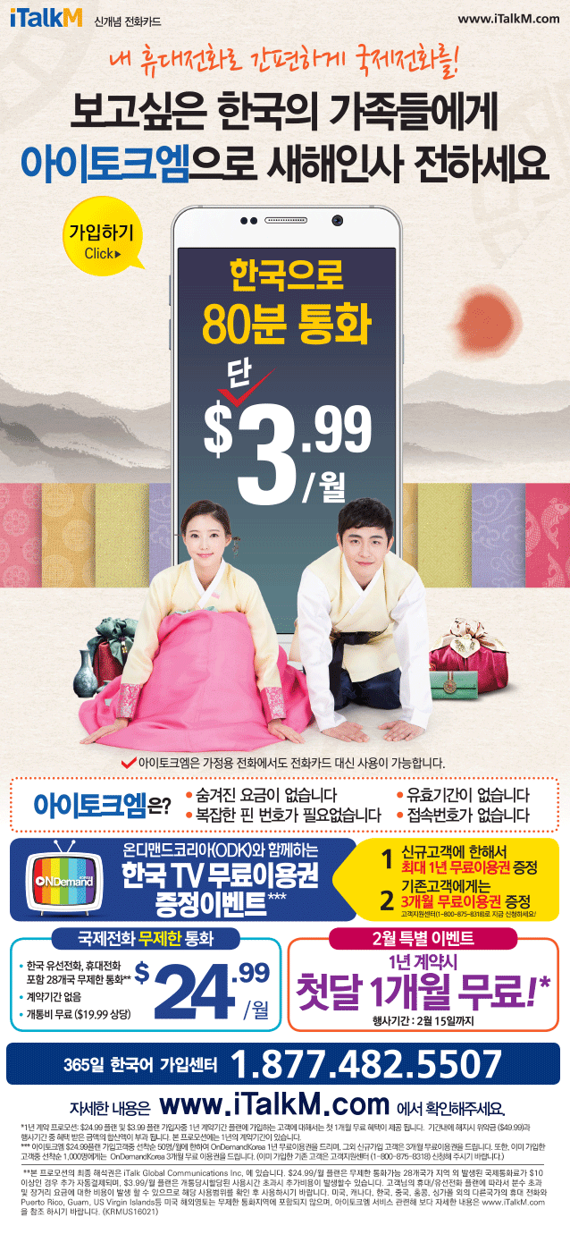 보고싶은 한국의 가족들에게 아이토크엠으로 새해인사 전하세요