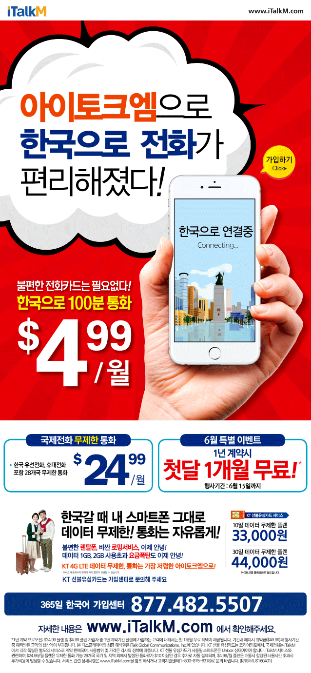 아이토크엠으로 한국으로 전화가 편리해졌다!