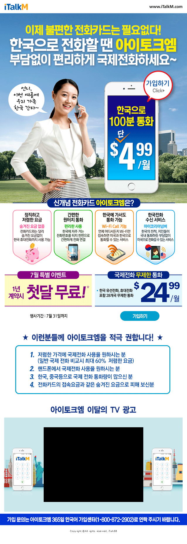한국으로 전화할 땐 아이토크엠