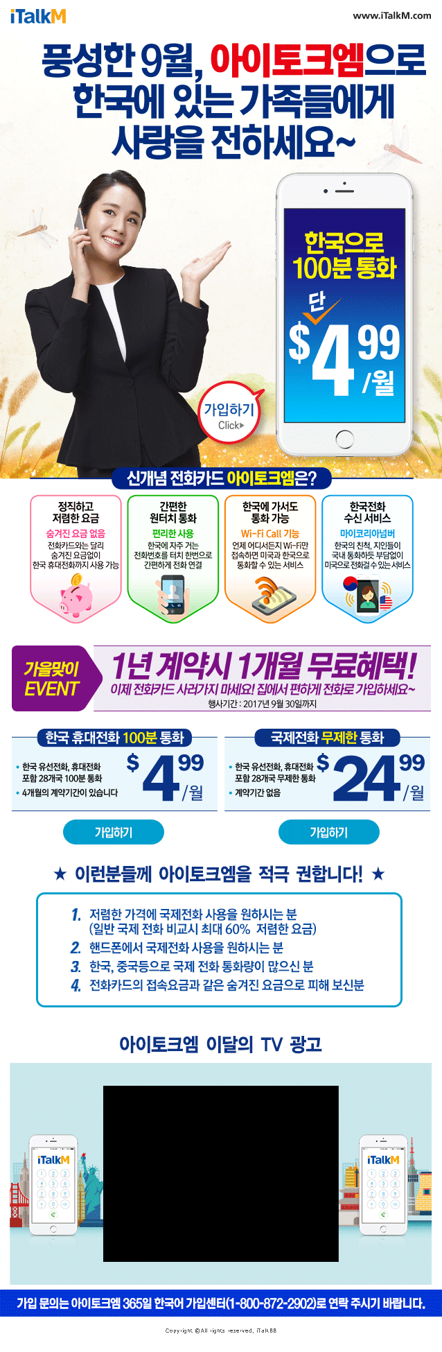 한아이토크엠으로 한국에 있는 가족들에게 사랑을 전하세요~