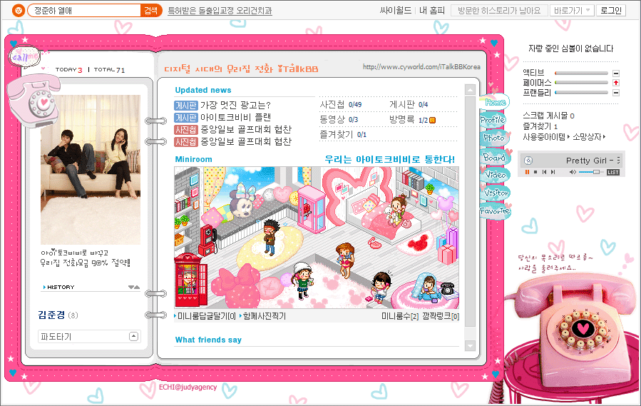 싸이월드 미니홈피 주소: www.italkbblog.com/