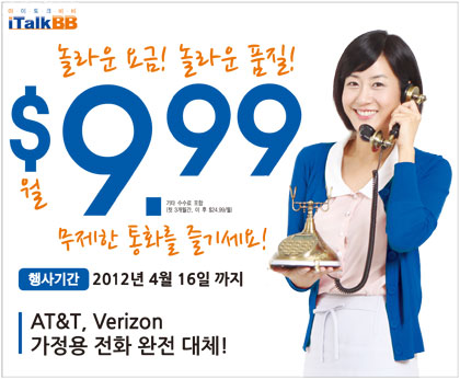 가입문의 1-800-872-2902 웹사이트www.Korea.iTalkBB.com