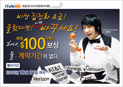 가입문의 1-800-872-2902 웹사이트www.Korea.iTalkBB.com