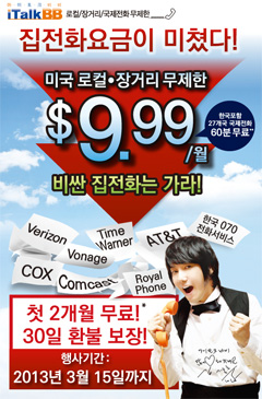 가입문의 1-800-872-2902 웹사이트www.Korea.iTalkBB.com