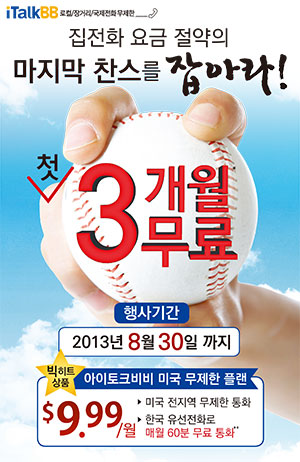 현재, 아이토크비비는 고객들의 성원에 힘입어 8월 특별 프로모션을 8월31일까지 연장한다고 밝혔다. 프로모션을 놓치 고객분들은 서둘러 가입을 하면 마지막 여름을 아주 시원하게 보낼 수 있을것이다. 이와 더불어, 미국 무제한 플랜(월사용료 $9.99)에 신규 가입하는 고객에게는 한시적으로 국제전화 60분(한국 포함 27개국) 무료통화의 혜택을 주고 있다. 8월 특별 프로모션의 첫 3개월 무료 혜택은 행사기간 동안 판매되는 모든 전화 서비스 플랜에 해당된다.