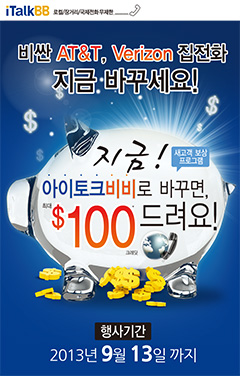 미주 한인 알뜰전화의 대표, 아이토크비비로 교체하면, 최대100불 보상 특별 프로모션 진행