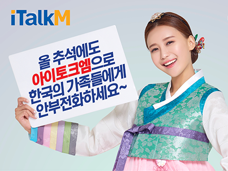 민족 최대의 명절인 추석, 매년 이맘때면, 즐거운 날을 함께 하지 못하는 한국의 가족, 친지들에게 추석인사를 전하려는 사람들로 인하여 한국과 미국사이의 국제 통화량이 급증하게 된다. 따라서 미국에서는 한국으로 저렴한 가격에 통화를 제공해 주는 서비스를 찾게된다. 그 중에서도 아이토크엠 국제전화는 한국은 물로 중국뿐만 아니라 전세계 28개국까지 저렴한 요금으로 이용할 수 있어 미주 한인들 사이에 가장 인기가 좋다.