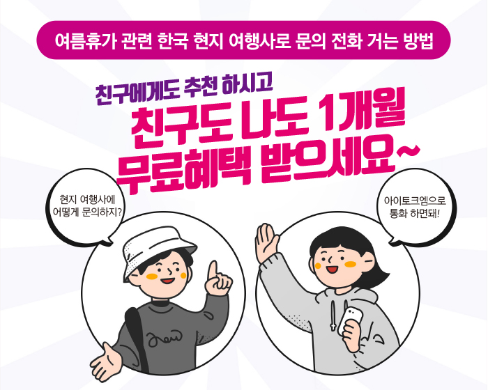 한국 현지 여행사로 국제전화는 아이토크엠으로 편하게 하세요~ 3분내 가입 & 원터치 통화 ~