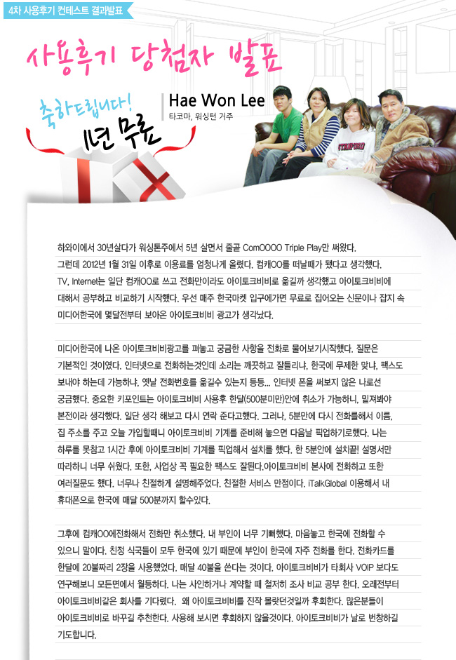 2012년 4차 사용후기 컨테스트 당첨자