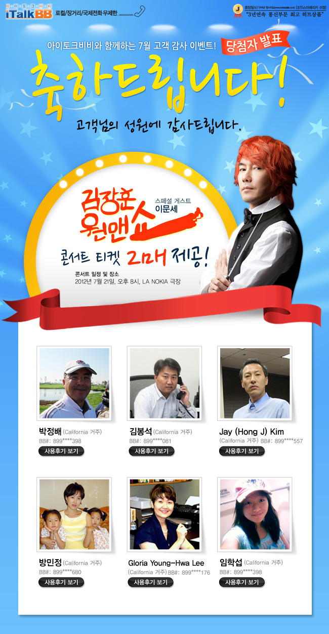 "아이토크비비와 함께하는 7월 고객 감사 이벤트!" 당첨자 발표