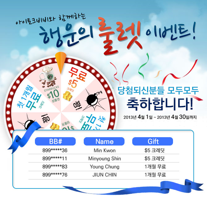 아이토크비비 행운의 룰렛 이벤트 당첨자