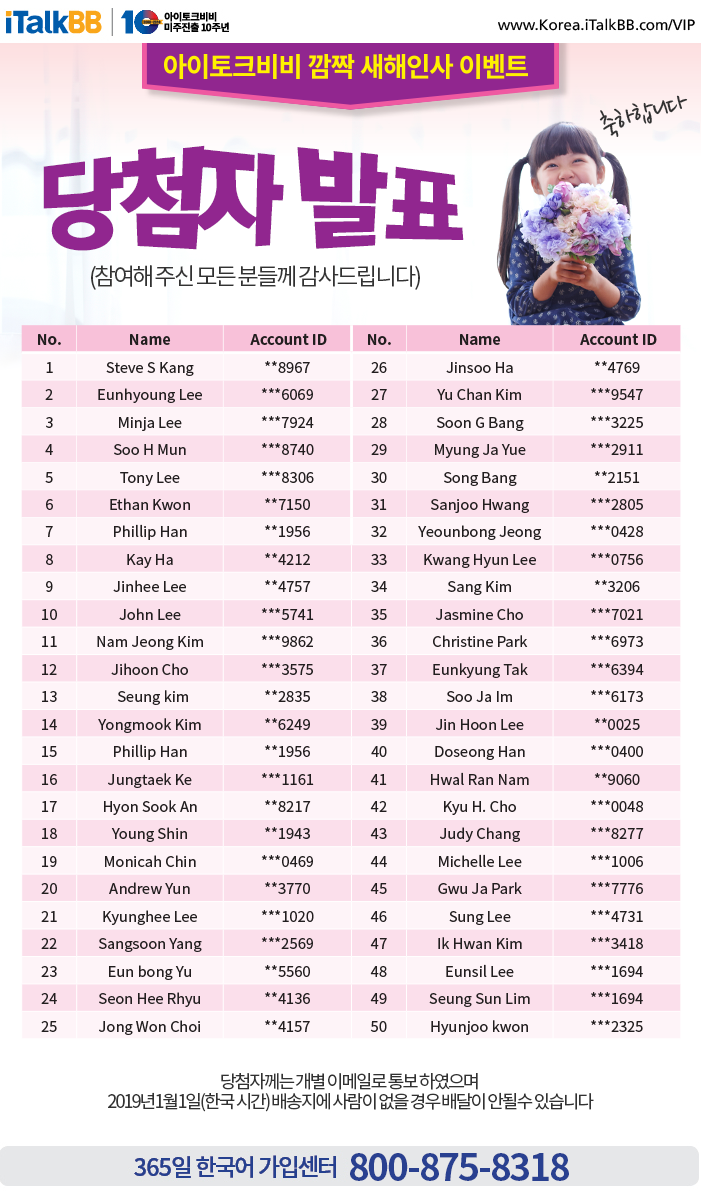 2019년 아이토크비비 깜짝 새해 인사 이벤트 당첨자 발표
