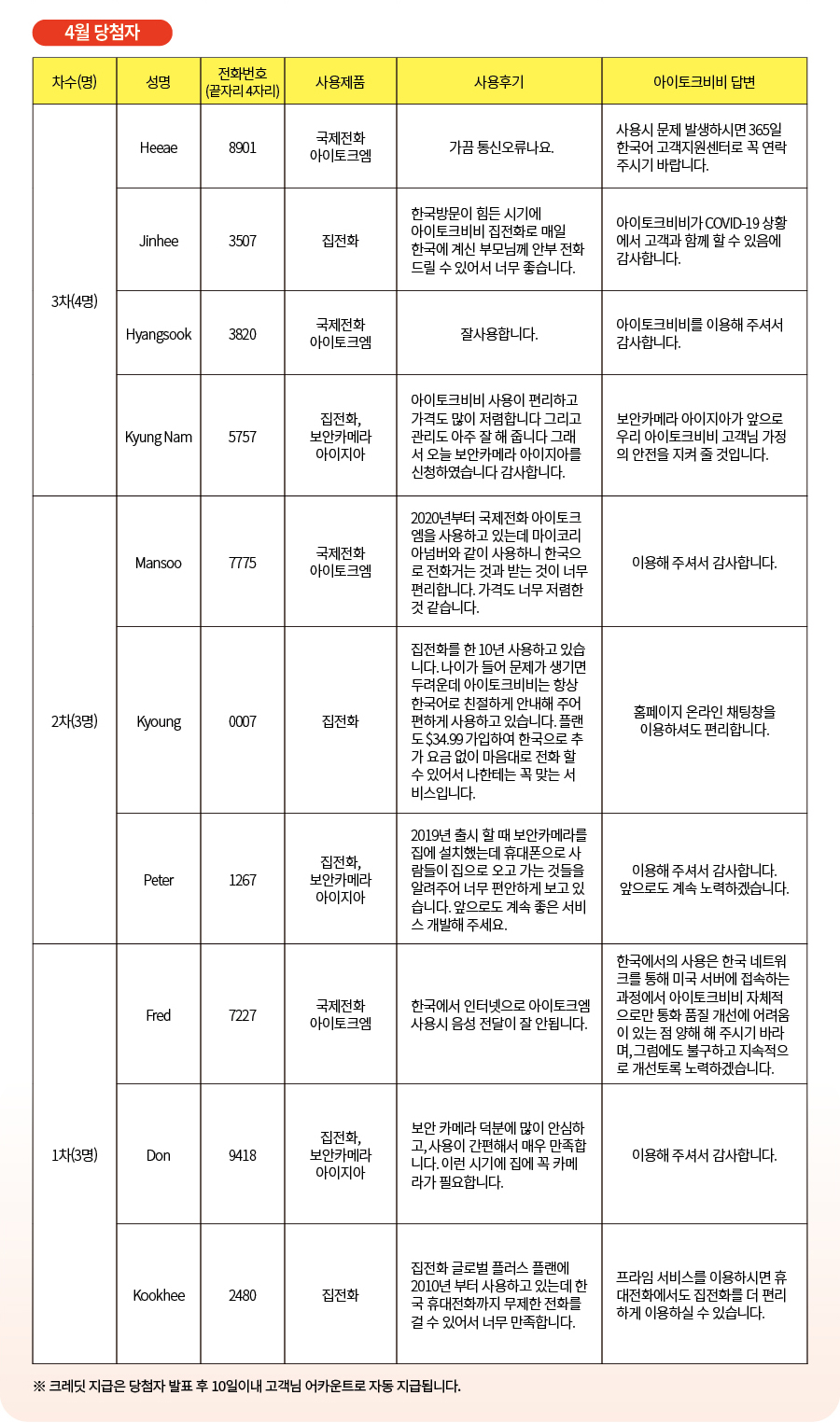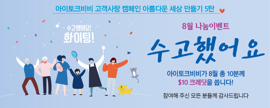 아이토크비비 고객사랑 캠페인 아름다운 세상 만들기 5탄 2021년 '사랑•행복•감사 나눔이벤트' $10 크레딧을 쏩니다! 당첨자 발표