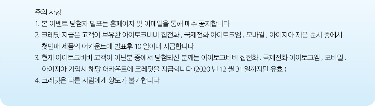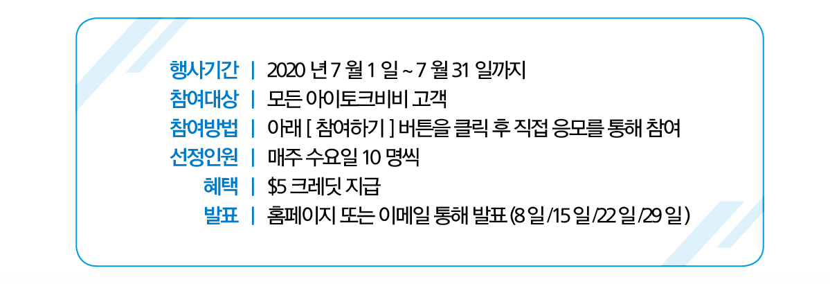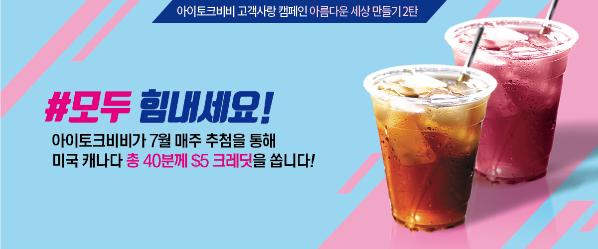아이토크비비 고객사랑 캠페인 아름다운 세상 만들기 2탄 모두 힘내세요! 7월 $5 크레딧을 쏩니다! 당첨자 발표