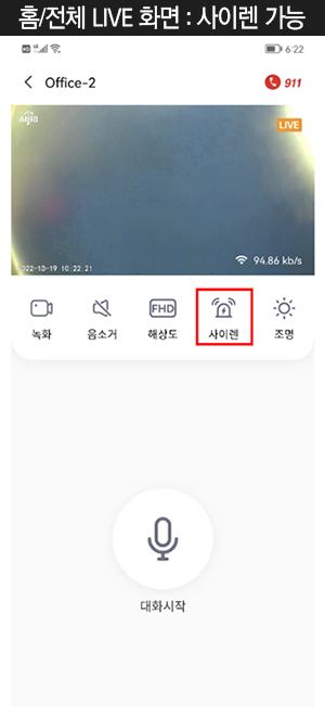 양방향 오디오가 켜진 상태에서 소리버튼(두번째 화면)을 누르면서 대화를 하면 되고, 상대방의 목소리를 들으려면 누른 손을 떼면 됩니다